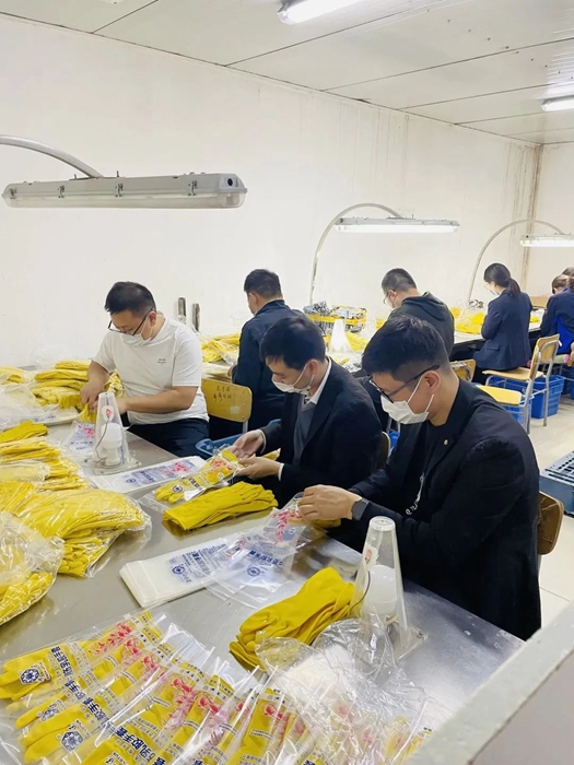 團(tuán)員青年們?cè)趯?shí)驗(yàn)生產(chǎn)線職工師傅的指導(dǎo)下,全身心投入到手套包裝工作中,大家一干就是將近兩個(gè)小時(shí), 包裝完成了2000余副手套。