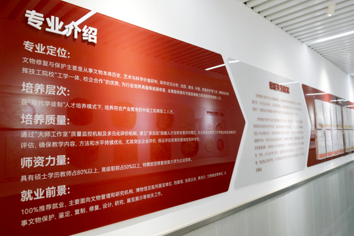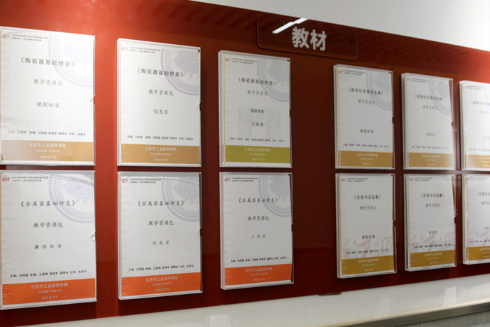 沒有成型的教材,王愛梅等老師就與這些特聘專家和技能大師一起探討,與團(tuán)隊教師合作搭建課程體系。現(xiàn)已完成10門一體化課程標(biāo)準(zhǔn)和教材、學(xué)材的開發(fā),并打通了中高級直升人才培養(yǎng)機制,同時完成主編《陶瓷器基礎(chǔ)修復(fù)》《陶瓷器文物修復(fù)》,參編《金屬器修復(fù)》等課程資源包。