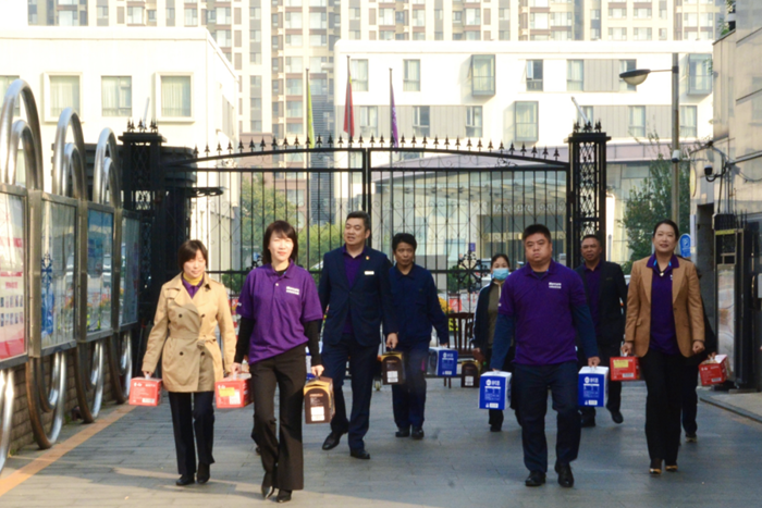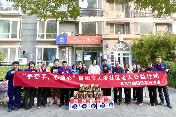 華騰美居酒店業(yè)主代表趙麗霞帶領(lǐng)管理團(tuán)隊(duì)走進(jìn)大望社區(qū),為老人們送上牛奶、燕麥、面條等慰問品,將濃濃的關(guān)愛和重陽節(jié)的祝福送到老人面前。