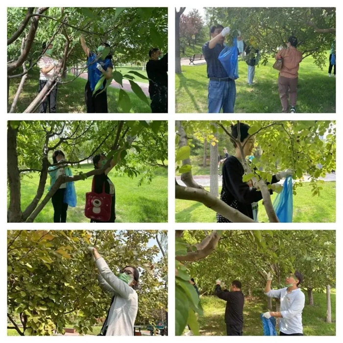 此次活動(dòng)內(nèi)容為樹(shù)木疏果,顧名思義,疏果就是疏除多余的果實(shí),最大限度減少樹(shù)體的無(wú)效養(yǎng)分消耗,集中營(yíng)養(yǎng)。通過(guò)疏果,可調(diào)節(jié)樹(shù)體健壯。工作內(nèi)容雖然簡(jiǎn)單,但大家仍然認(rèn)真聆聽(tīng)公園工作人員對(duì)此次活動(dòng)內(nèi)容的講解,絲毫沒(méi)有怠慢的想法。活動(dòng)中大家熱情高漲,自動(dòng)分組,有人負(fù)責(zé)海棠樹(shù)有人負(fù)責(zé)桃樹(shù),一切井然有序。