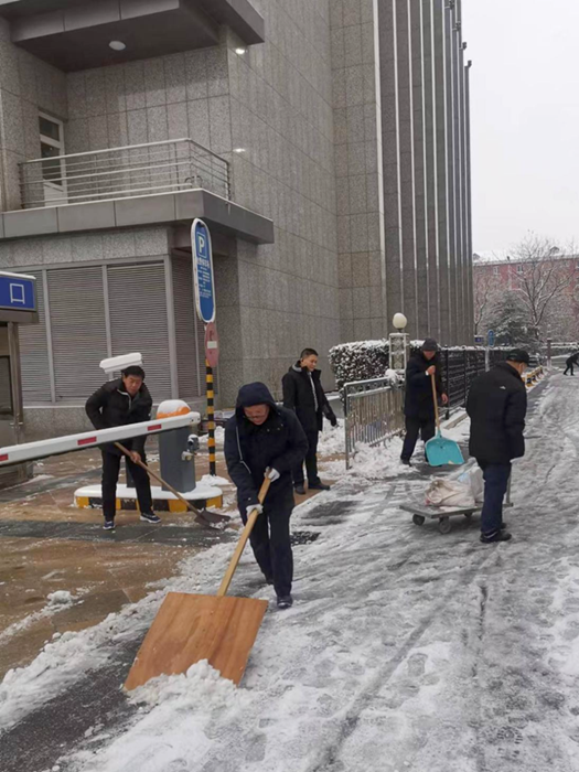 大雪壓城,華騰拓展公司迅速響應(yīng),每天派出50余名職工進(jìn)行掃雪鏟冰行動(dòng)。為了確保在寫字樓中辦公的客戶出行和業(yè)務(wù)不受影響,華騰拓展職工冒雪開展掃雪鏟冰工作,并對(duì)主要路段使用融雪劑進(jìn)行融雪作業(yè),防止結(jié)冰打滑產(chǎn)生安全事故。