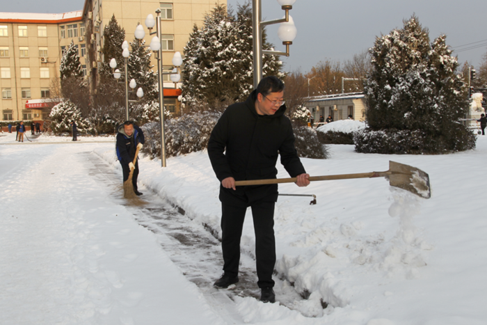 剛到單位的干部職工,紛紛拿起掃帚、鐵鍬,加入到掃雪除冰大“會(huì)戰(zhàn)”的隊(duì)伍中。大家齊心協(xié)力、現(xiàn)場(chǎng)一片熱火朝天,干凈整潔的道路很快清掃出來,保證了干部職工出行安全。