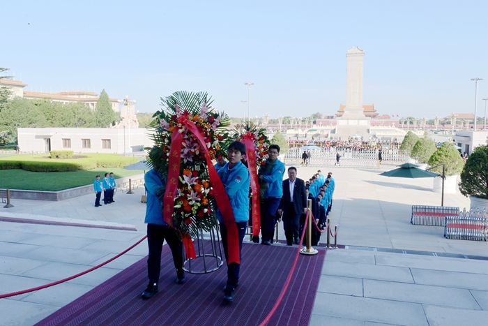 10月11日,北京化工集團(tuán)黨委書記、董事長(zhǎng)陳宇帶隊(duì)來(lái)到毛主席紀(jì)念堂,看望慰問(wèn)參加志愿服務(wù)的北化青年志愿者。