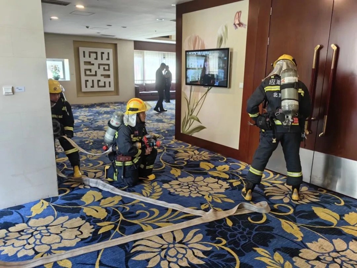 華騰美居酒店順利通過(guò)此次檢查考核。檢查結(jié)束后,為提高酒店應(yīng)急救援實(shí)戰(zhàn)水平,勁松消防特勤站就地開(kāi)展了一次火災(zāi)救援現(xiàn)場(chǎng)演練,參演人員由特勤站救援人員和酒店微型消防站義務(wù)救援人員組成。演練取得圓滿成功。