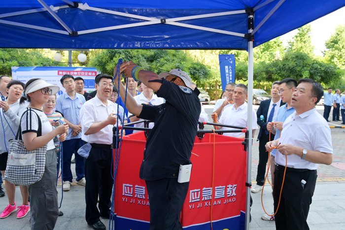 電動(dòng)自行車電池的穿刺實(shí)驗(yàn),讓大家實(shí)際感受到了電池在擊穿狀態(tài)下的危險(xiǎn)程度,提示了電動(dòng)自行車應(yīng)規(guī)范購置、不私自改裝,電瓶及電動(dòng)自行車不進(jìn)樓入戶,要停放在集中停放、充電場(chǎng)所;煙熱環(huán)境模擬逃生讓體驗(yàn)者切身感受到“暢通生命通道”的意義,深刻認(rèn)識(shí)到日常工作中維護(hù)好“消防疏散指示標(biāo)識(shí)”在關(guān)鍵時(shí)刻能救命;擁擠踩踏應(yīng)急處置讓大家在緊急疏散的過程中避免受到更多的傷害,掌握安全繩扣的栓系方法便于快速從高處降至安全地帶,心肺復(fù)蘇及AED的正確使用讓大家知道如何自救互救,出真水滅真火讓大家熟練掌握了初期火災(zāi)的應(yīng)對(duì)方法。