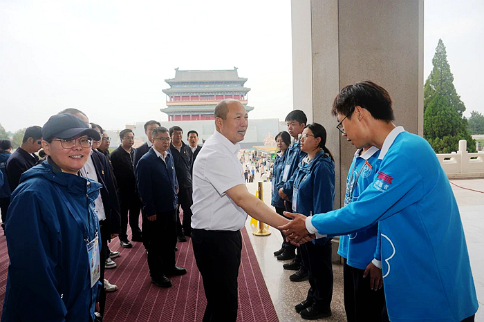 5月23日,北京化工集團黨委常委、副總經(jīng)理韓寶海一行來到毛主席紀念堂,看望慰問開展志愿服務的技師學院青年志愿者。