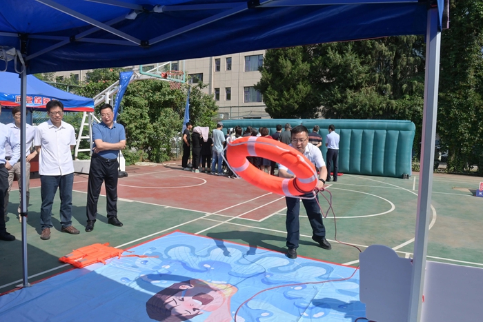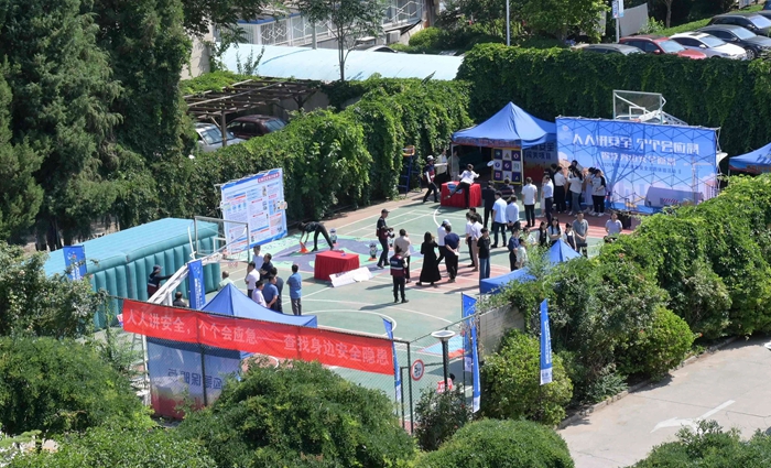 演練結(jié)束后,舉辦方在大廈籃球場開啟安全咨詢體驗活動。整個活動共設(shè)置了6個項目,分別為擁擠踩踏應(yīng)急處置體驗區(qū)(充氣帳篷)、消防隱患排查試驗區(qū)、電動車電池穿刺爆燃體驗裝置、溺水自救互救教學(xué)培訓(xùn)區(qū)、醉酒交通AR模擬體驗、安全標志互動區(qū)?;顒蝇F(xiàn)場氣氛熱烈,盡管天氣炎熱,但絲毫沒有減弱大家體驗掌握應(yīng)急技能的熱情。