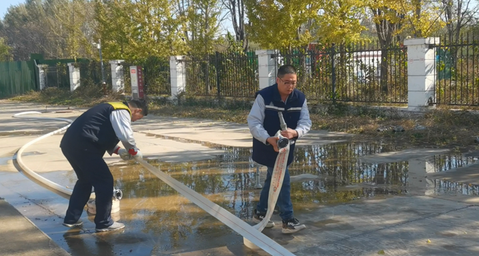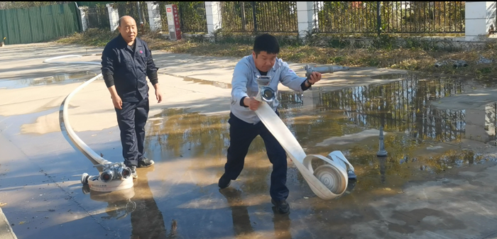 同時,華騰化工還專門組織了消火栓實操。“先接水帶、再開閥門、最后對準(zhǔn)目標(biāo)出水!”在安全員的指導(dǎo)下,員工兩人一組協(xié)作,快速完成水帶連接、水槍連接等步驟,水柱精準(zhǔn)噴射至指定區(qū)域,整個過程有條不紊。