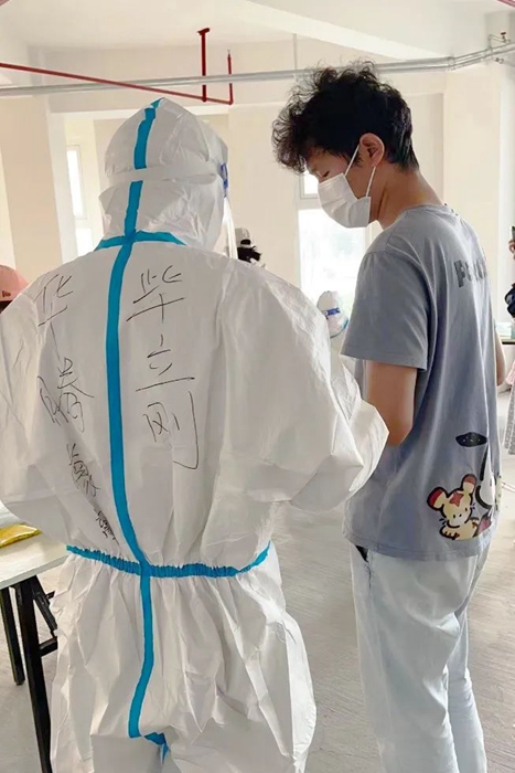 最讓我難以忘記的是穿大白的經(jīng)歷。因這一穿就是三個多小時,以前都是看別人穿防護服,現(xiàn)在輪到我了。防護服密不透風(fēng),穿著三個多小時后脫下來時,全身都已經(jīng)濕透了,這時深刻體會到了醫(yī)護人員和志愿者的辛苦和不易。