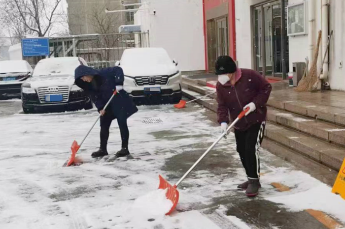 大雪壓城,華騰拓展公司迅速響應(yīng),每天派出50余名職工進(jìn)行掃雪鏟冰行動(dòng)。為了確保在寫(xiě)字樓中辦公的客戶(hù)出行和業(yè)務(wù)不受影響,華騰拓展職工冒雪開(kāi)展掃雪鏟冰工作,并對(duì)主要路段使用融雪劑進(jìn)行融雪作業(yè),防止結(jié)冰打滑產(chǎn)生安全事故。