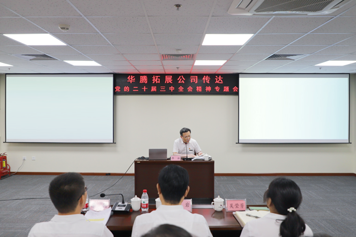 7月31日,華騰拓展公司黨總支召開學(xué)習(xí)貫徹黨的二十屆三中全會精神專題宣講報告會,北京化工集團總經(jīng)理助理,華騰拓展公司黨總支書記、董事長李泳作宣講報告。李泳圍繞學(xué)習(xí)貫徹黨的二十屆三中全會精神,結(jié)合集團“231”戰(zhàn)略布局、三個“北化”發(fā)展方向以及華騰拓展公司工作實際,明確了當(dāng)前及今后一段時期的重點工作、重點任務(wù)。