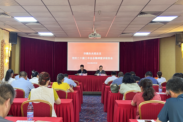 8月5日,華騰東光黨總支召開學(xué)習(xí)貫徹黨的二十屆三中全會精神專題宣講報告會,黨總支書記、董事長、總經(jīng)理宋鋼作宣講報告。