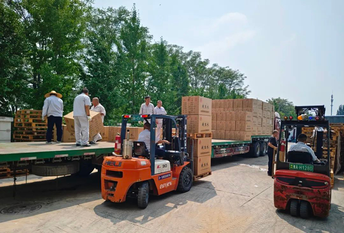 華騰化工立即調(diào)度人力、物力,爭(zhēng)分奪秒組織應(yīng)急物資配送。歷經(jīng)5個(gè)多小時(shí)不間歇備貨、裝載,滿載應(yīng)急物資的4輛大貨車陸續(xù)發(fā)車,前往抗汛一線。