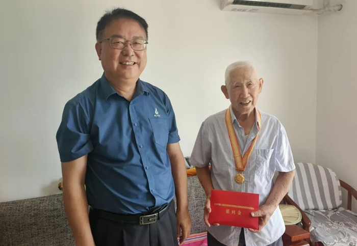 北京化工集團(tuán)黨委高度重視紀(jì)念章頒發(fā)工作,黨委書記、董事長(zhǎng)陳宇等集團(tuán)領(lǐng)導(dǎo)帶隊(duì)向抗戰(zhàn)老戰(zhàn)士、老同志吳新華、焦鐵、崔震頒發(fā)紀(jì)念章,向老戰(zhàn)士、老同志們致以崇高敬意、親切慰問(wèn)。