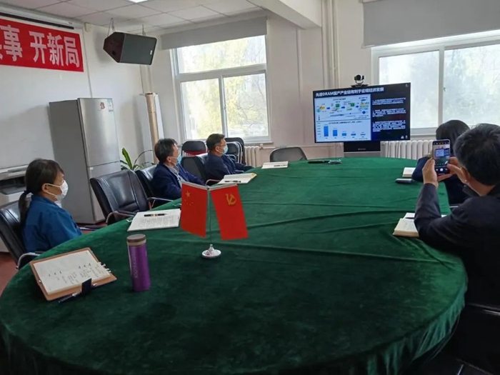北京化工集團(tuán)黨委書記、董事長王國華與長鑫集電(北京)公司授課講師親切交談并作學(xué)習(xí)總結(jié),黨委副書記吳瑞峰主持學(xué)習(xí)。