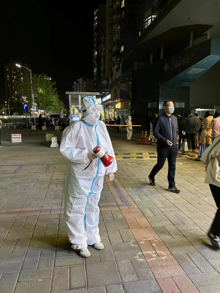 華騰丹陛華業(yè)務(wù)骨干劉純?cè)谂思覉@街道潘家園東里社區(qū)參加核酸檢測現(xiàn)場秩序維護(hù)或信息錄入工作。