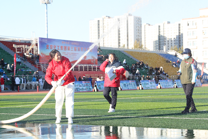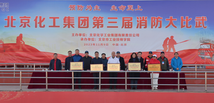 在全國第32個“119”消防宣傳日當(dāng)天,北京化工集團第三屆消防大比武在技師學(xué)院舉辦,黨委書記、董事長陳宇致開幕詞,黨委副書記吳瑞峰主持開幕式并致閉幕詞,黨委常委、副總經(jīng)理韓寶海主持閉幕式,來自全系統(tǒng)的350多名職工參加大比武。