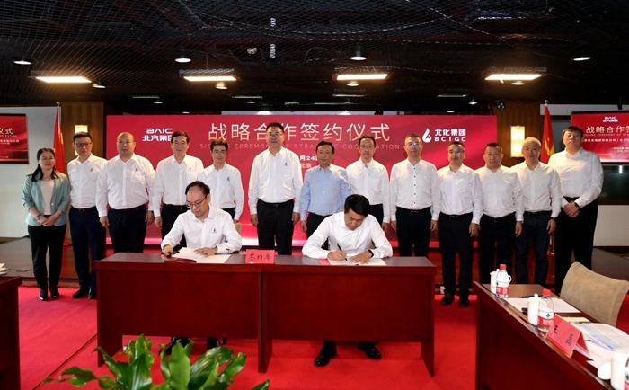 9月24日上午,北京化工集團(tuán)與北汽集團(tuán)戰(zhàn)略合作協(xié)議簽約儀式在北京化工集團(tuán)總部舉行。北京化工集團(tuán)黨委書(shū)記、董事長(zhǎng)陳宇,黨委副書(shū)記、董事、總經(jīng)理?xiàng)钚褫x;北汽集團(tuán)黨委書(shū)記、董事長(zhǎng)張建勇出席簽約儀式。北京化工集團(tuán)副總經(jīng)理張榮寰,北汽集團(tuán)黨委常委、副總經(jīng)理胡漢軍代表雙方簽署協(xié)議。