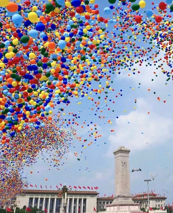9月3日,紀(jì)念中國(guó)人民抗日戰(zhàn)爭(zhēng)暨世界反法西斯戰(zhàn)爭(zhēng)勝利80周年大會(huì)在北京天安門(mén)廣場(chǎng)隆重舉行。當(dāng)人們沉浸在雄渾威武的解放軍受閱部隊(duì)和滾滾鐵流中時(shí),騰空而起的8萬(wàn)支彩色氣球,伴隨著翱翔的和平鴿,將天安門(mén)廣場(chǎng)上空渲染得五彩繽紛、銳氣祥和,瞬間將紀(jì)念大會(huì)再次推向高潮。
