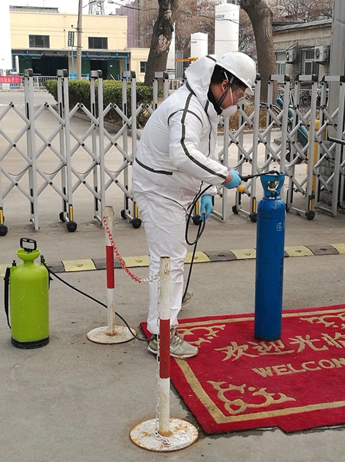 疫情發(fā)生以來,華騰冀春按照北化集團黨委要求,全力做好疫情防控工作。公司在3天時間內購入口罩1000個,消毒液16桶,測溫儀2個,高壓噴水壺2個,保障公司全體值班人員每天2個口罩的替換需求。自疫情爆發(fā)以來,華騰冀春無一例確診和疑似病例。
