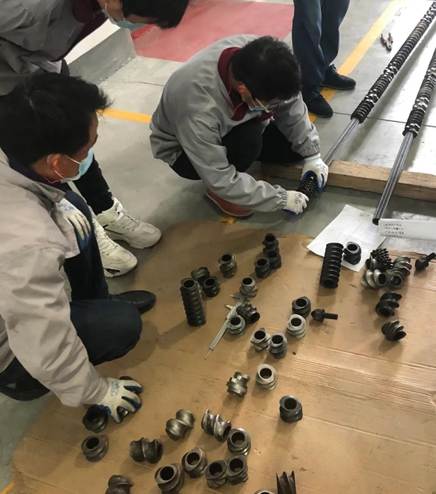此次競賽嚴格按照首研公司作業(yè)流程標準進行評比考核,分筆試和實際操作兩個環(huán)節(jié)。筆試內(nèi)容包括機器設(shè)備的理論知識和安全生產(chǎn)方面的意識兩方面組成;實操包括設(shè)備開機和螺桿的組裝等流程。