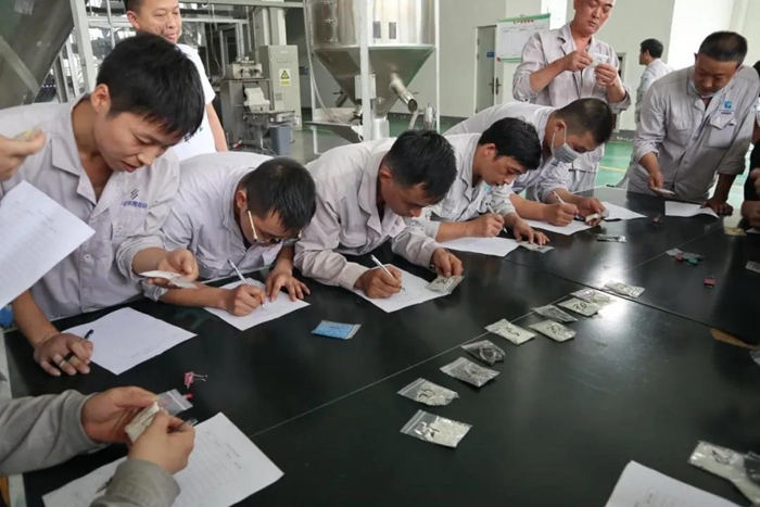 此次競賽分為雙螺桿擠出機拆裝螺桿比賽、原材料識別及產(chǎn)成品識別比賽,以及開機實操比賽三個部分。在前期組織干部職工進行理論培訓(xùn)基礎(chǔ)上,25日上午正式拉開了現(xiàn)場比拼的帷幕。