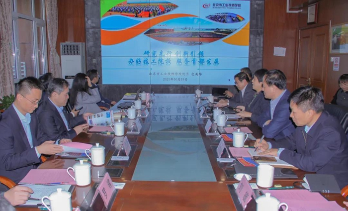 10月19日上午,中化環(huán)境公司黨委書記、董事長、總經(jīng)理崔焱一行9人慕名來到北京市工業(yè)技師學(xué)院,參觀了解學(xué)院豐碩辦學(xué)成果,與北京化工集團、學(xué)院共商培訓(xùn)合作事項,北京化工集團黨委書記、董事長王國華,黨委副書記吳瑞峰及相關(guān)部室負責(zé)人,技師學(xué)院相關(guān)領(lǐng)導(dǎo)、教師一同參觀、洽談。