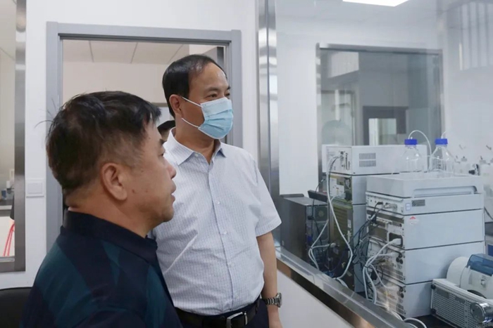 王國華來到化研院科方孵化器辦公樓,深入到實驗室、檢測室現(xiàn)場,全面檢查、詳細詢問工作人員安全生產(chǎn)、疫情防控各項措施落實情況。