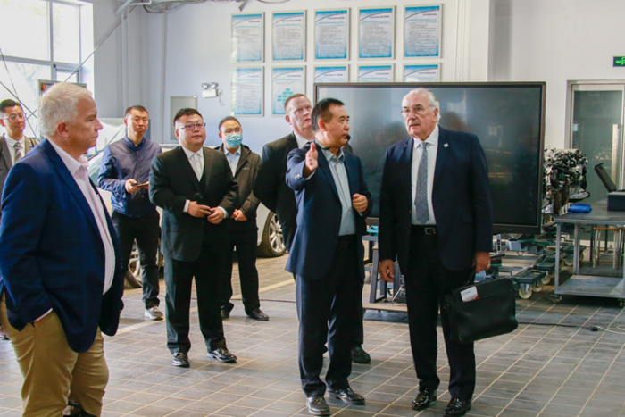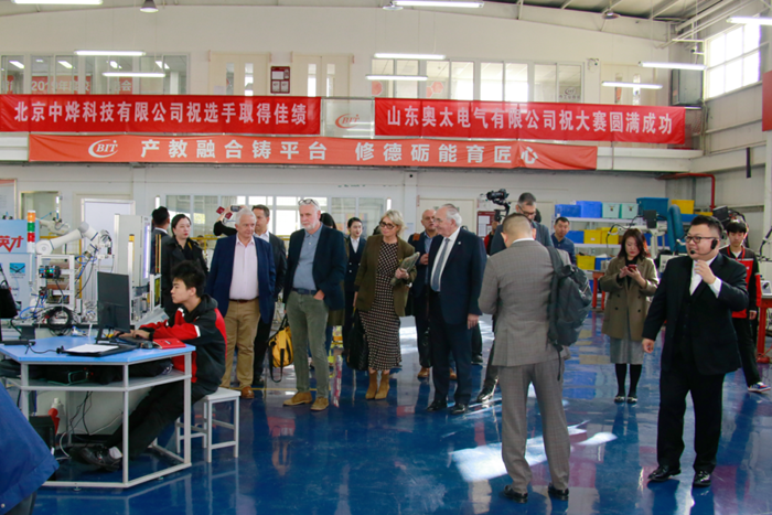 按照精心設(shè)計的接待路線,英國職業(yè)技能訪問團一行先后來到學(xué)院數(shù)控車間、數(shù)控世賽基地、文物修復(fù)實訓(xùn)室等多個教學(xué)場所參觀。