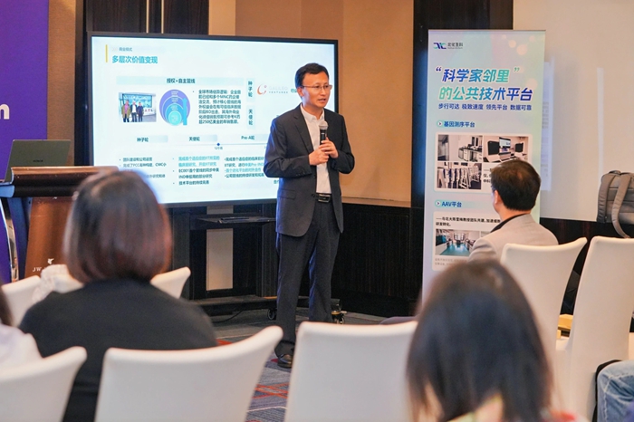 論壇中,北化生科黨總支書記、總經(jīng)理申海成從專業(yè)運營空間、專業(yè)運營團隊和專項產(chǎn)業(yè)基金等多個方面,深度聚焦以核酸藥物為代表的五大細分賽道,向與會者詮釋“國際生物島”獨有的“1公里科學(xué)家鄰里”生態(tài),并通過高標(biāo)準(zhǔn)技術(shù)平臺、專項基金、技術(shù)審評、專屬空間、高科技人才和公共服務(wù)六大生態(tài)要素協(xié)同,系統(tǒng)闡釋從“0-1-N”的產(chǎn)業(yè)化路徑。